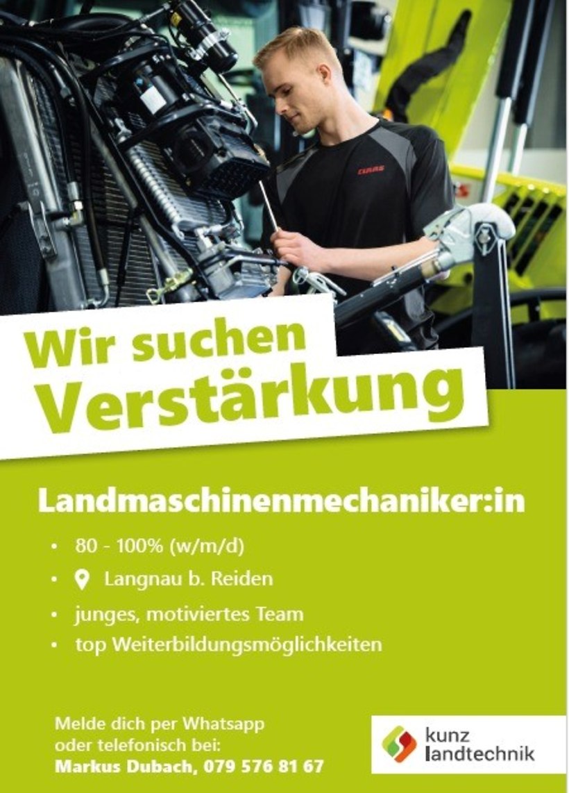 Wir bieten Dir bei uns in Langnau einen zukunftsorientierten, modernen Landtechnikbetrieb wo immer viel los ist. Im jungen und dynamischen Team lernst du alle Grundlagen von Elektrik, Elektronik, Hydraulik und Mechanik.
